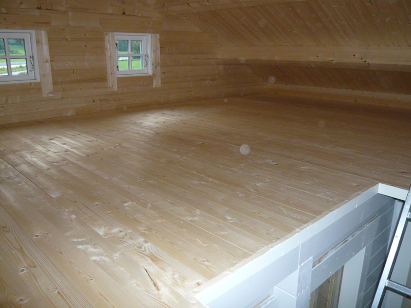 Hytta er produsert hos vår dyktige og pålitlige produsent i Litauen. Bransjefolk må være enig med oss i at produktet til tross for lav pris er førsteklasses i sin art. Byggreglene for slike enkle hytter i Norge setter en grense på 50m2 som vi her forholder oss til. Skogtun 49 er på 49m2 med 21m2 hems. Den er praktisk innredet med gang, 2 soverom, bad hems og stor stue/kjøkkenløsning som virker utrolig romslig. Skogtun 49 er egentlig en høyeffektiv hytte som lett kan huse 8-10 personer for overnatting og bespisning. For lengre opphold er hytta tilpasset 5-6 personer.